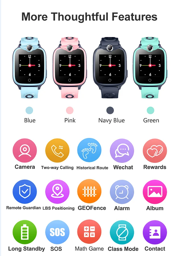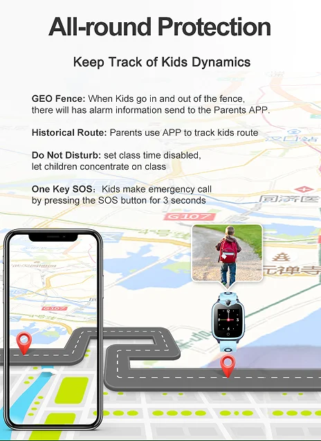 Support: Calling,SOS,GEO fence,Low battery alarm,Remote monitoring